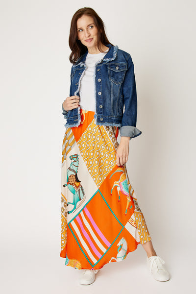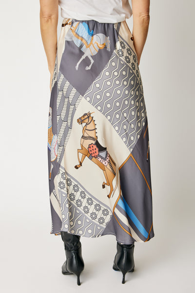 The Bias-Cut Equestrian Skirt is a refined staple with an elegant drape. Crafted from a luxe blend of 80% viscose and 20% silk, it flows fluidly with a soft sheen that elevates any look. Designed in a bias cut for natural movement, this skirt flatters the body while the equestrian-inspired motif adds a distinctive touch. The one-size silhouette makes it a versatile piece that suits a variety of body types.