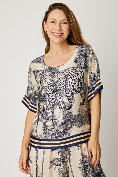 Versatile Styling: Pair with the Jungle Print Pant for a matching set or style with a simple tee for casual chic.