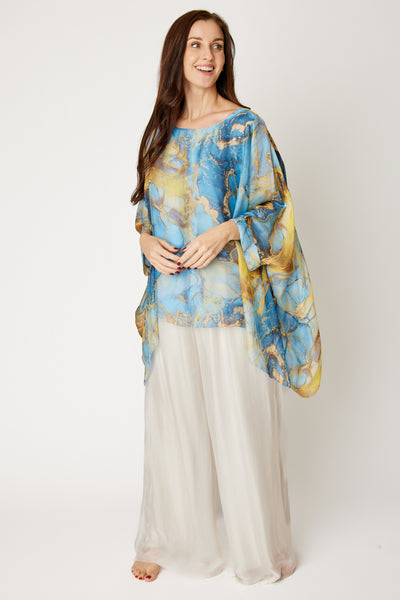 The Italian Silk Sky Marble Flowing Top is a wearable work of art. Made in Italy from a luxe blend of 30% silk and 70% viscose, it drapes fluidly with a lightweight, airy feel. The marble-inspired print in rich green tones adds a modern, artistic touch, while the one-size silhouette flatters a variety of body types with ease.