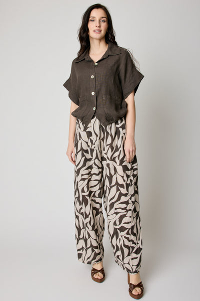The Chocolate Pattern Linen Pant brings depth and warmth to an effortlessly refined silhouette. Featuring a rich chocolate-toned print, this piece adds subtle dimension while maintaining timeless elegance.