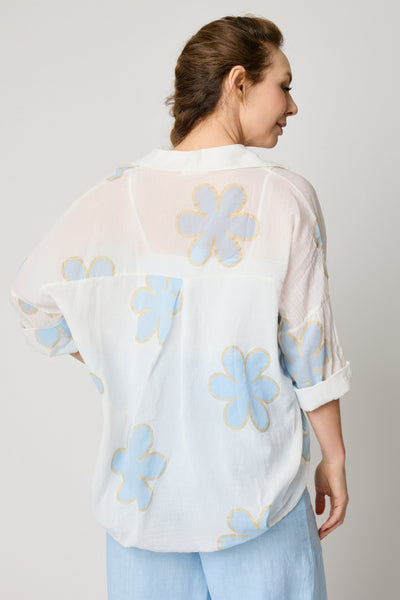 Light, feminine, and easy to wear, the Daisy Print Cotton Voile Top brings softness and charm to everyday styling. The delicate daisy print adds a fresh, effortless feel while maintaining a polished silhouette.