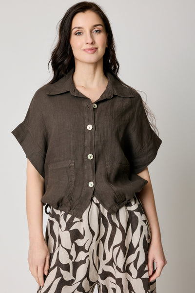 The Drawcord Short Sleeve Blouse blends soft structure with effortless versatility. Designed with a relaxed silhouette and adjustable drawcord detail, this piece allows you to customize the shape for a more defined or easy drape.