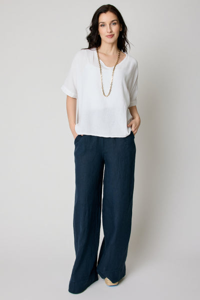 Crafted from breathable linen, these pants feel light and airy with natural texture and structure. Side pockets add functionality without compromising the clean lines of the design.