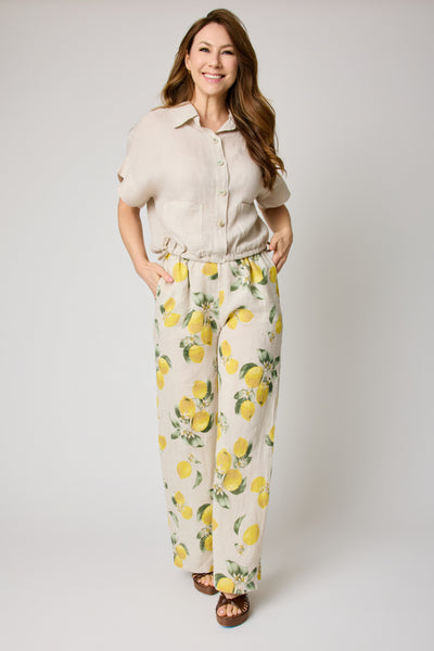 The Linen Lemon Pant brings a playful yet sophisticated touch to your wardrobe with its lightweight, breathable linen fabric and vibrant lemon print. Designed for comfort and effortless style, these pants feature a relaxed, flattering fit, making them perfect for warm-weather dressing. Whether paired with a simple top or styled as a statement piece, they exude sunny, laid-back elegance.