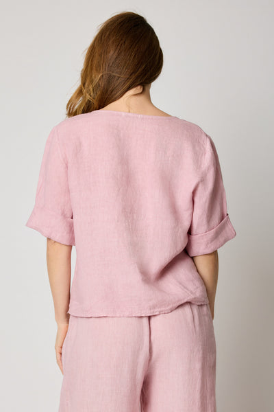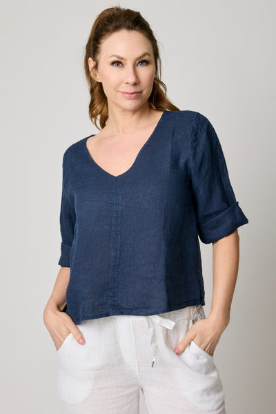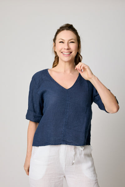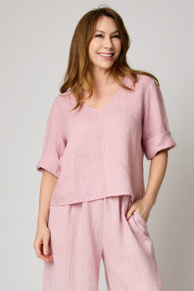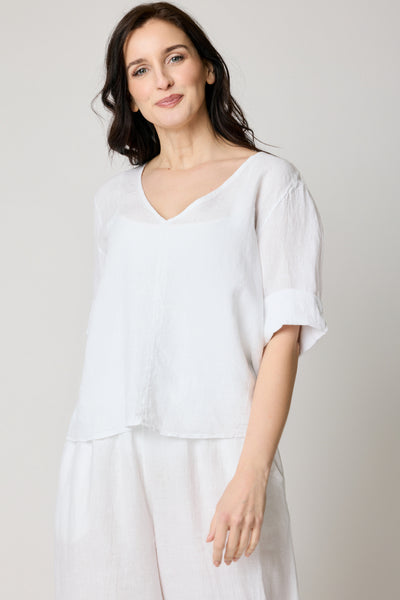 V-Neck Linen Crop Tee