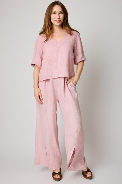 The V-Neck Linen Crop Tee is a modern essential designed with clean lines and effortless ease. The flattering v-neckline adds softness, while the cropped length gives it a contemporary edge that pairs perfectly with high-rise trousers or skirts.