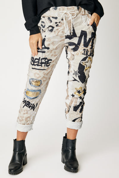 The Graffiti Letters Jogger brings an urban edge to luxury loungewear. Made in Italy, this standout piece combines premium craftsmanship with a street-style attitude. The bold graffiti lettering makes a statement, while the relaxed jogger silhouette keeps it comfortable and versatile for everyday wear.