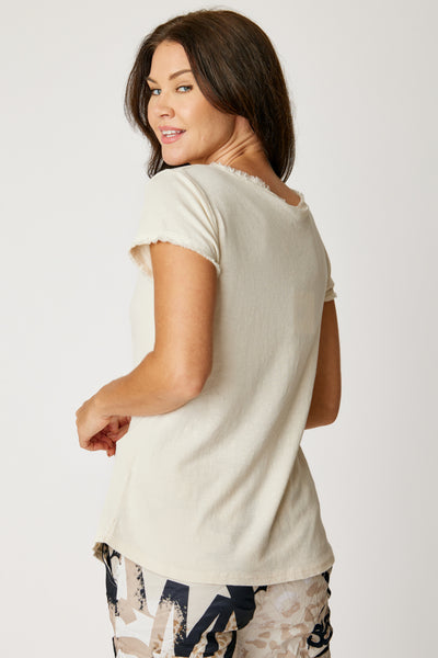 The Fitted Knit Tee with Ruffle Trim is the perfect elevated basic — versatile enough for layering, styling, and wearing season after season.