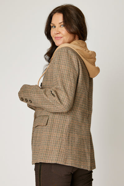 The Plaid Hoodie Blazer redefines smart-casual, making it a standout piece for both weekday meetings and weekend outings.