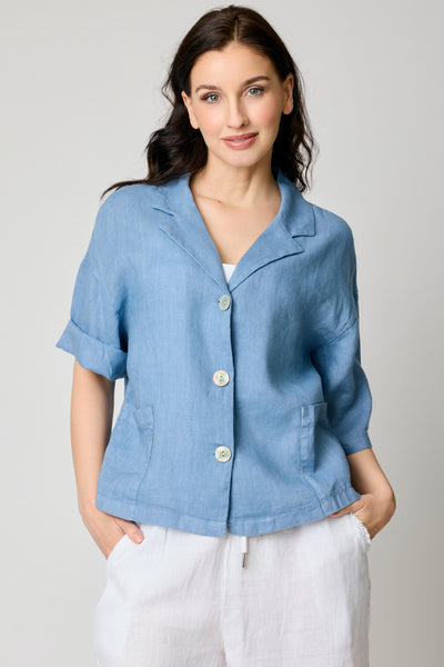 Short Sleeve Linen Smock Jacket