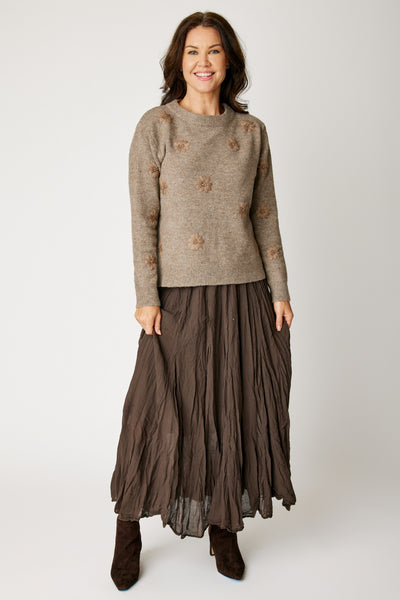 The Embroidered Floral Sweater is a timeless knit that brings a touch of artistry and elegance to your everyday wardrobe.